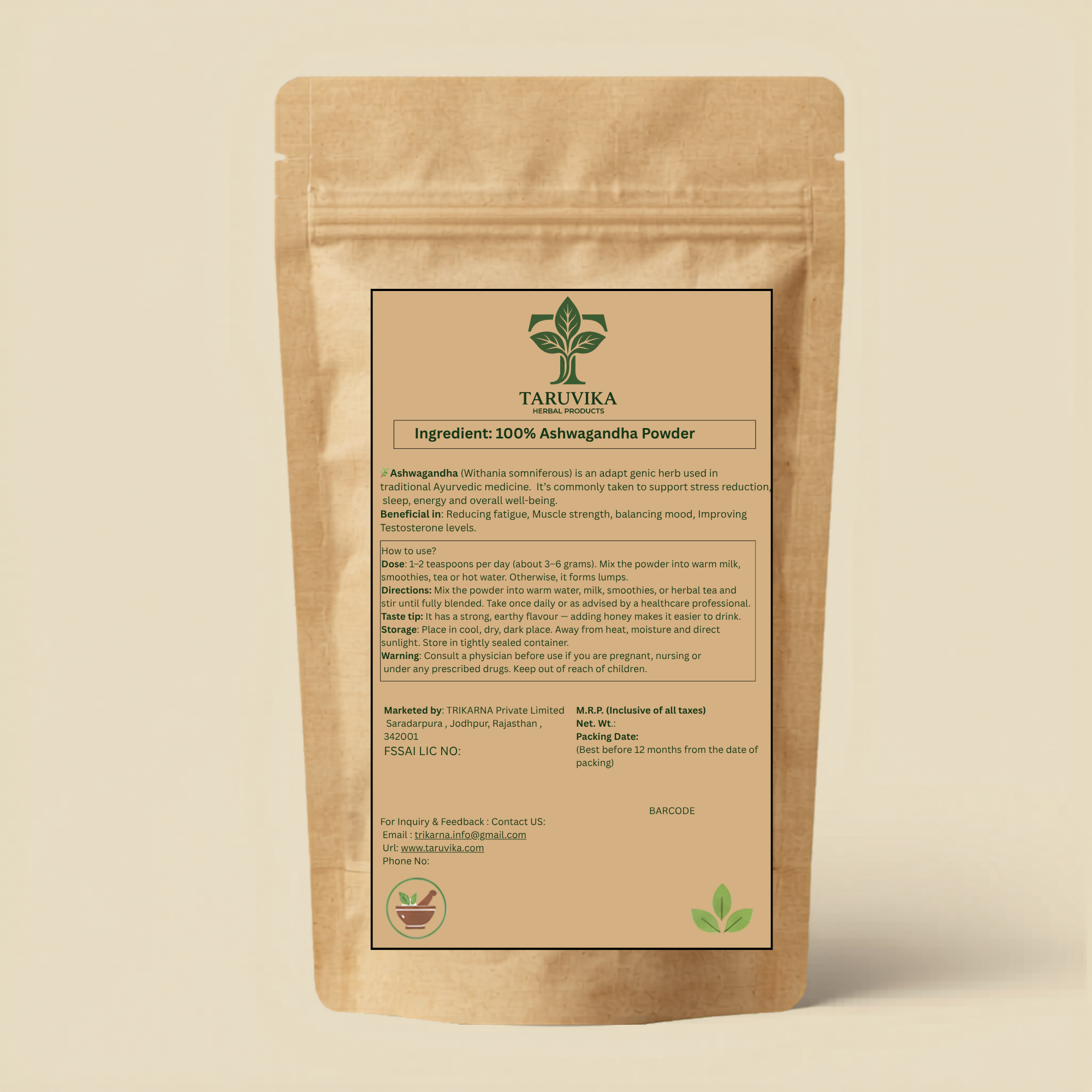 Taruvika 100% Pure Ashwagandha Powder – Natural Stress Relief & Energy Support