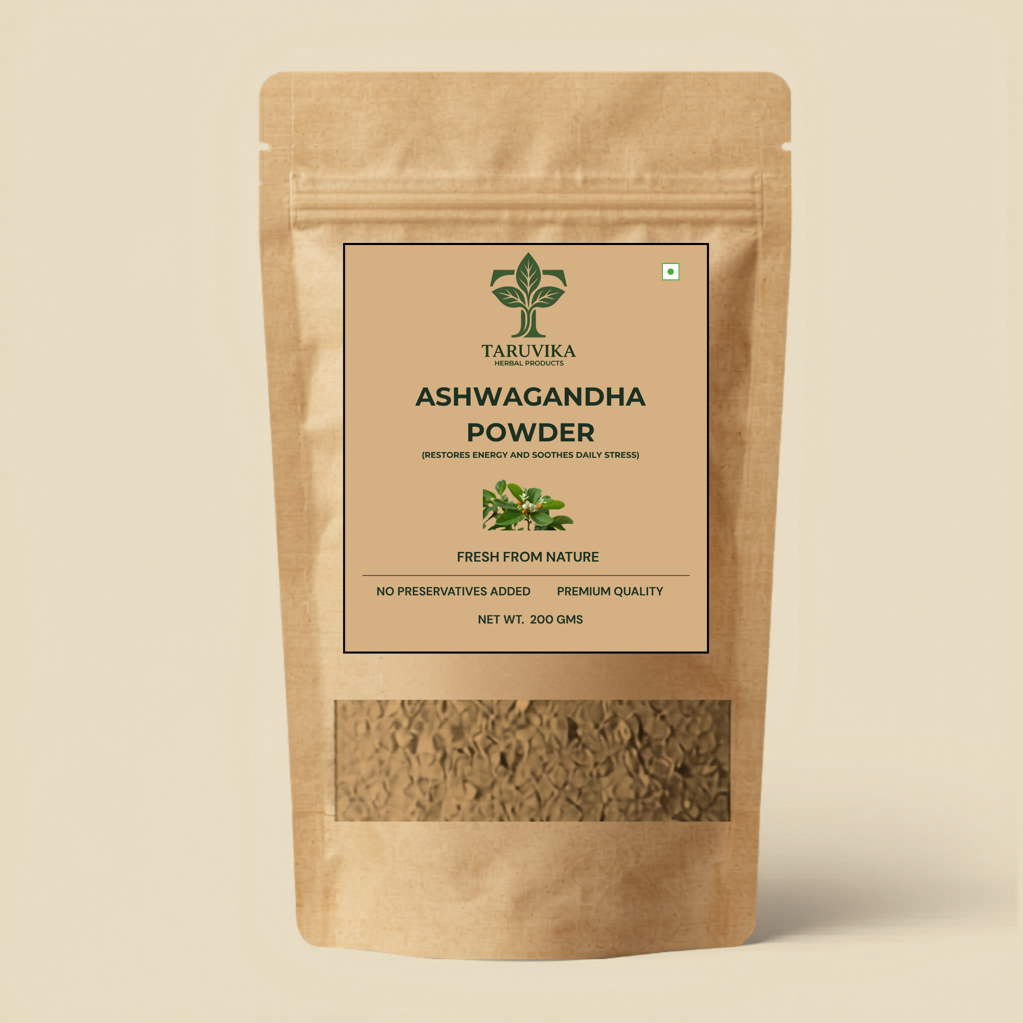 Taruvika Ashwagandha Powder is a powerful Ayurvedic herb known for reducing stress, improving stamina, and supporting overall well-being. Ideal for enhancing strength, boosting energy, and maintaining mental balance naturally.