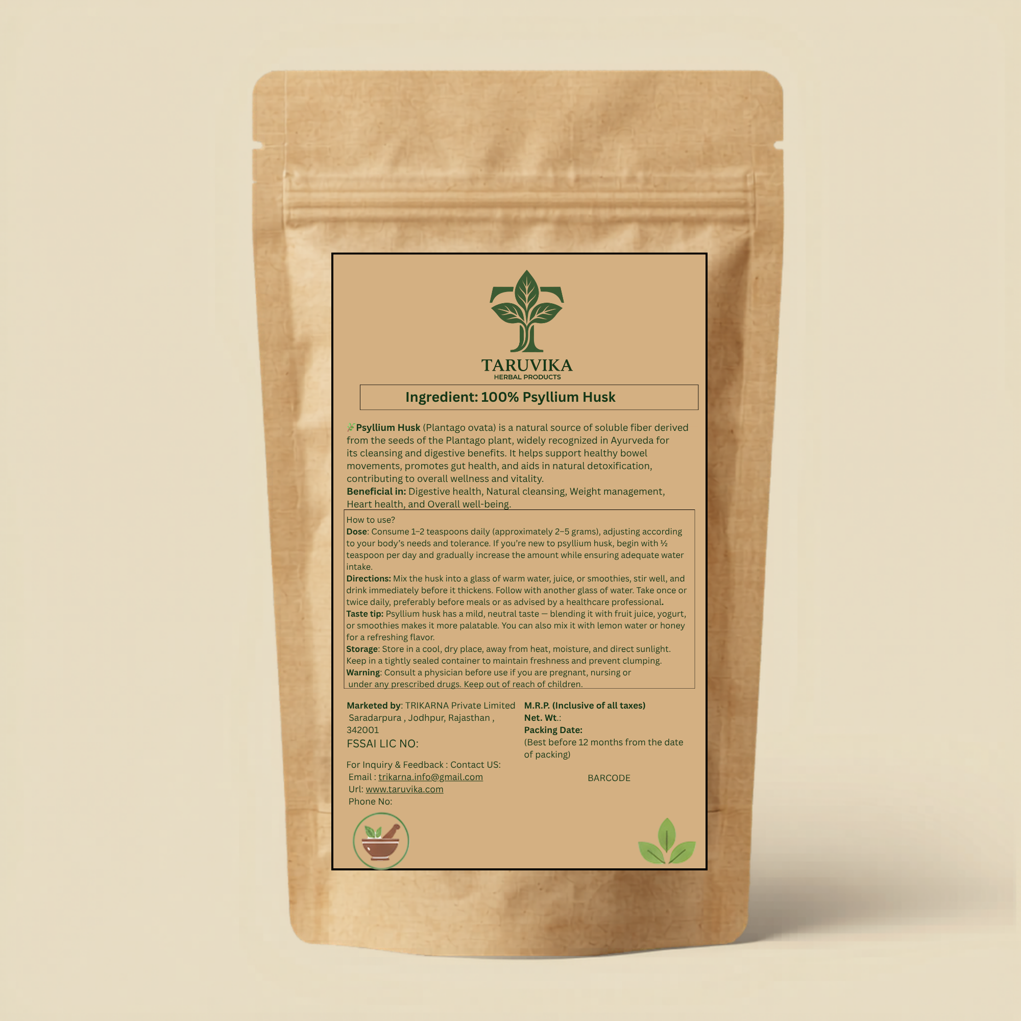 Taruvika Psyllium Husk is a natural source of soluble fiber that promotes healthy digestion and supports gut health. It helps maintain regular bowel movements and supports weight management naturally.